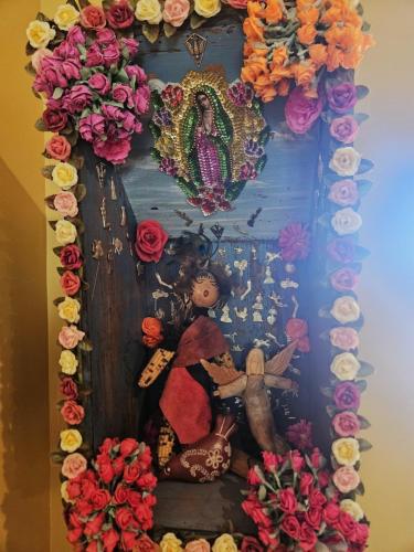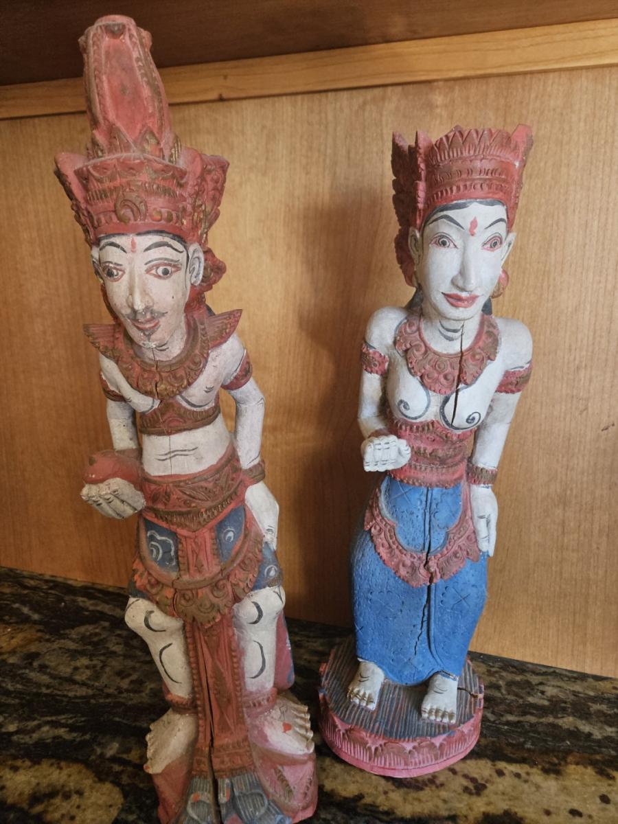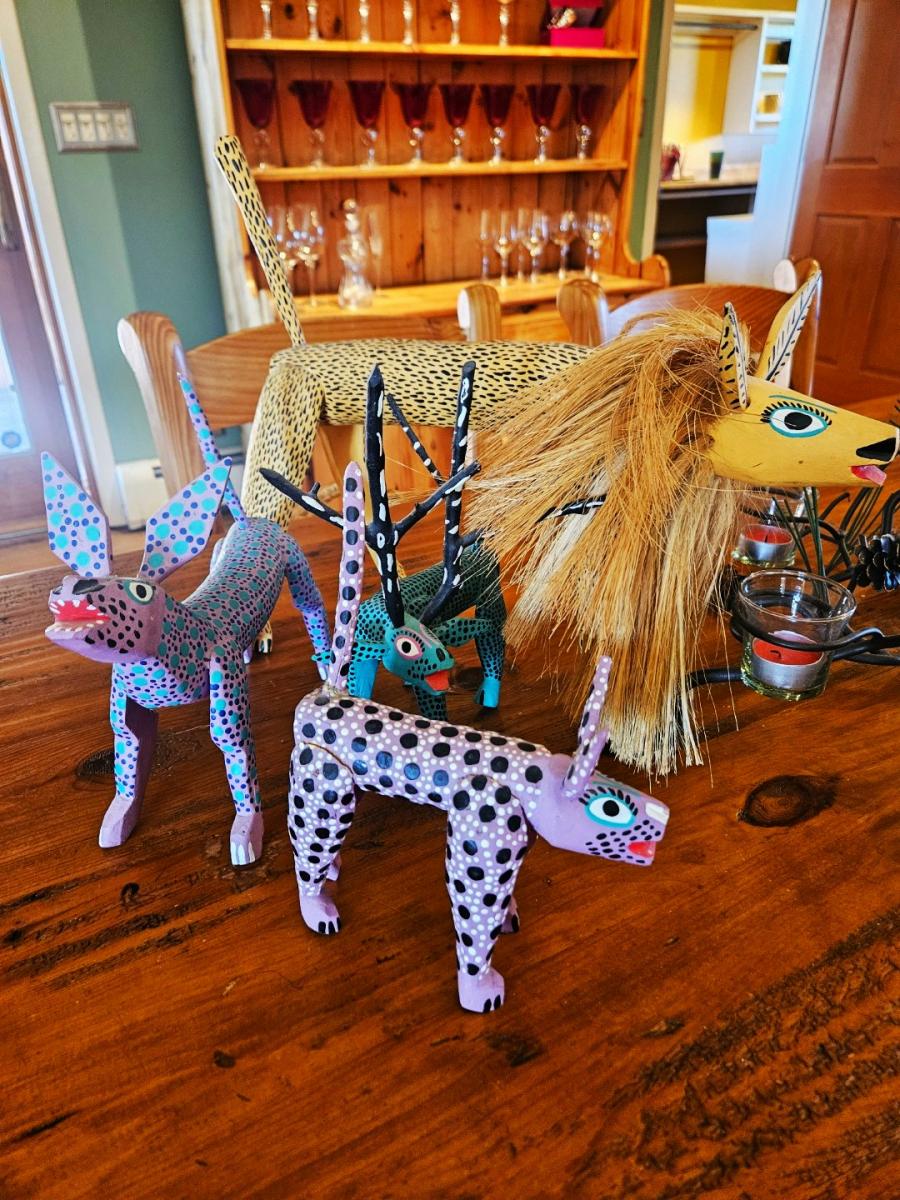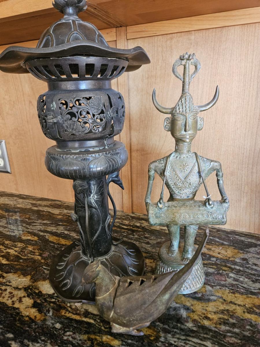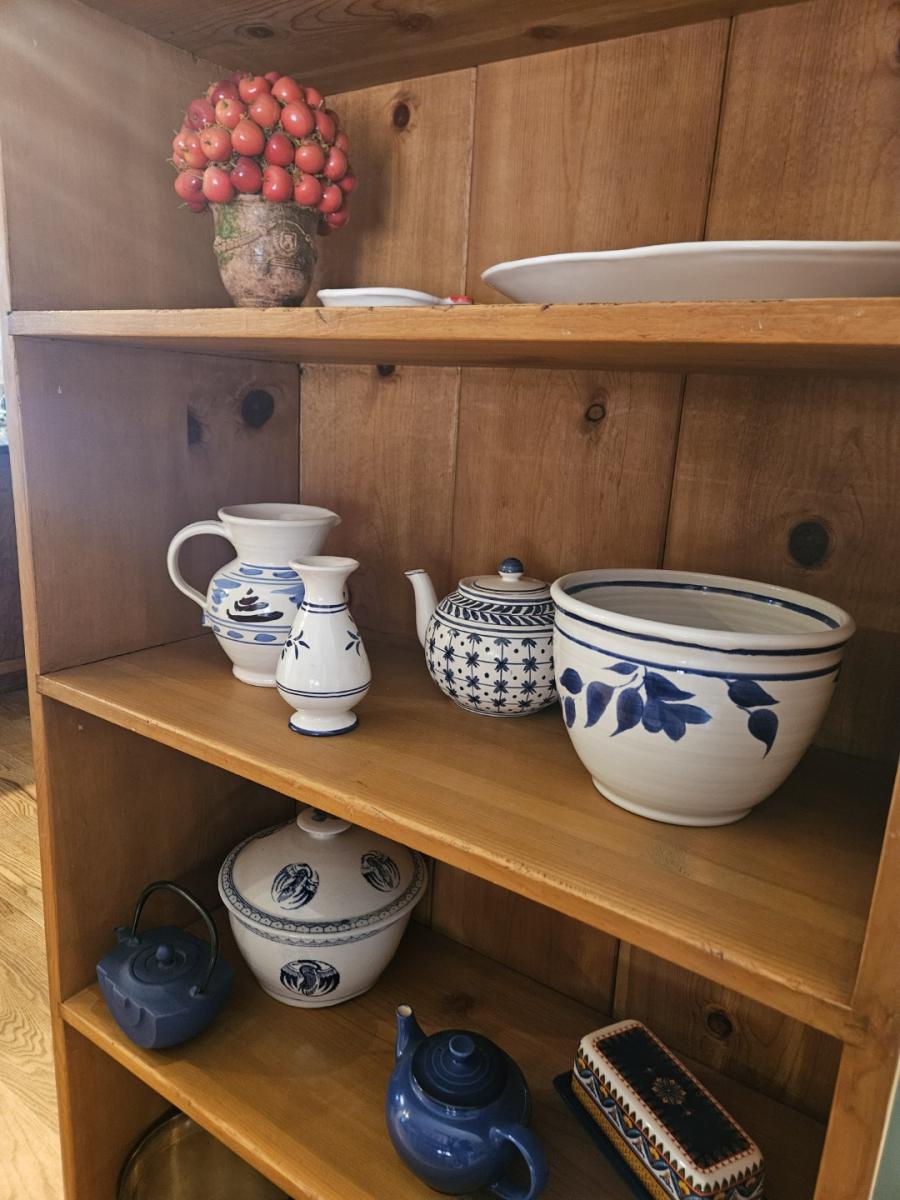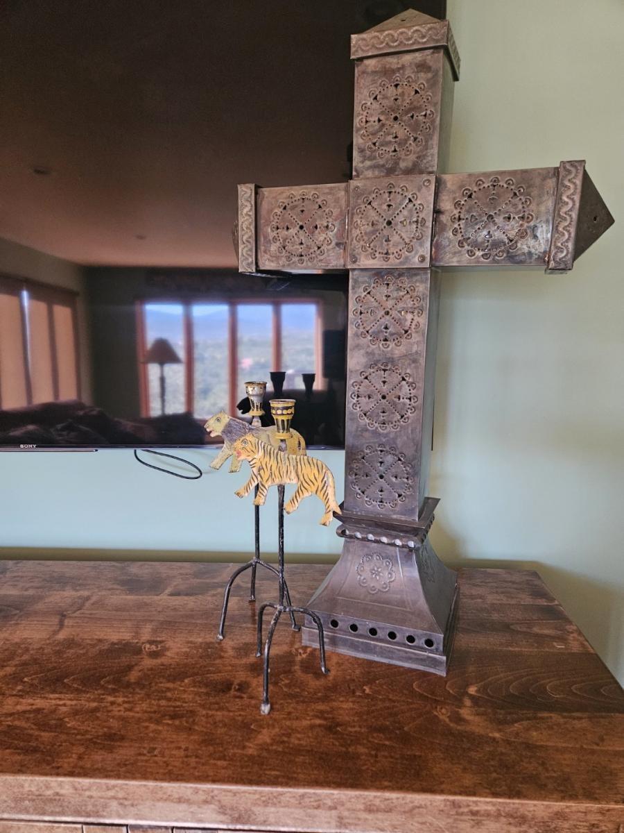 Ready to upgrade your guest room for the holidays? We have three bedroom suites with beautiful beds, side tables, lamps, mirrors and rugs. There is decor from around the globe with lots of unique, one-of-a-kind items to add that very special touch to your living room. Comfy sofas, rustic side tables, throw rugs and a farm-house dining table complete the sublimely Santa Fe style of this wonderful estate sale.