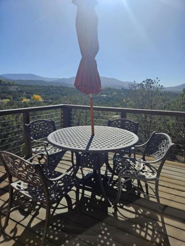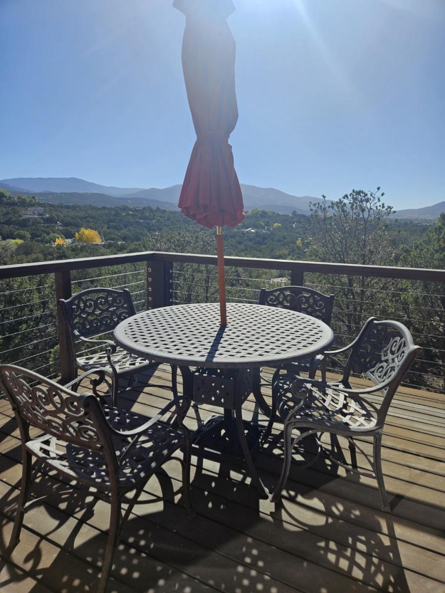 This STUNNING home in North Santa Fe will take your breath away and so will the beautiful furniture, art, decor and rugs inside.