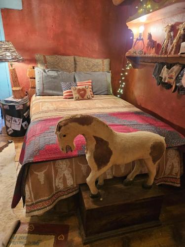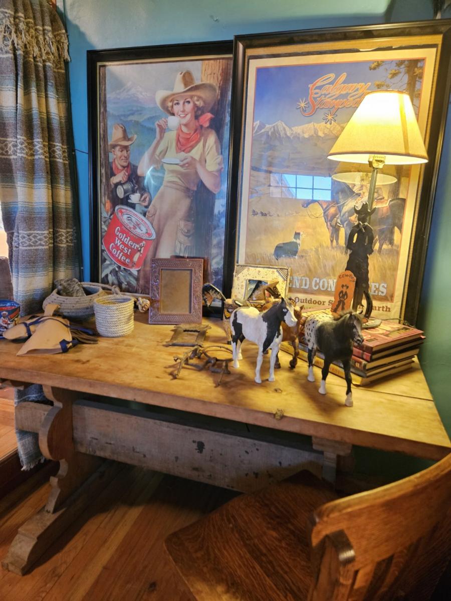 “Pearl of the Pecos” is how to describe this one-of-a-kind sale. This stunning horse property, on the edge of the Pecos Wilderness, is two houses and three barns worth of western treasure. Just the view from the back deck is worth the drive, let alone the fabulous contents. The photos will tell the story and I will be adding more in the days to come. So, saddle up and seriously – don’t miss this!